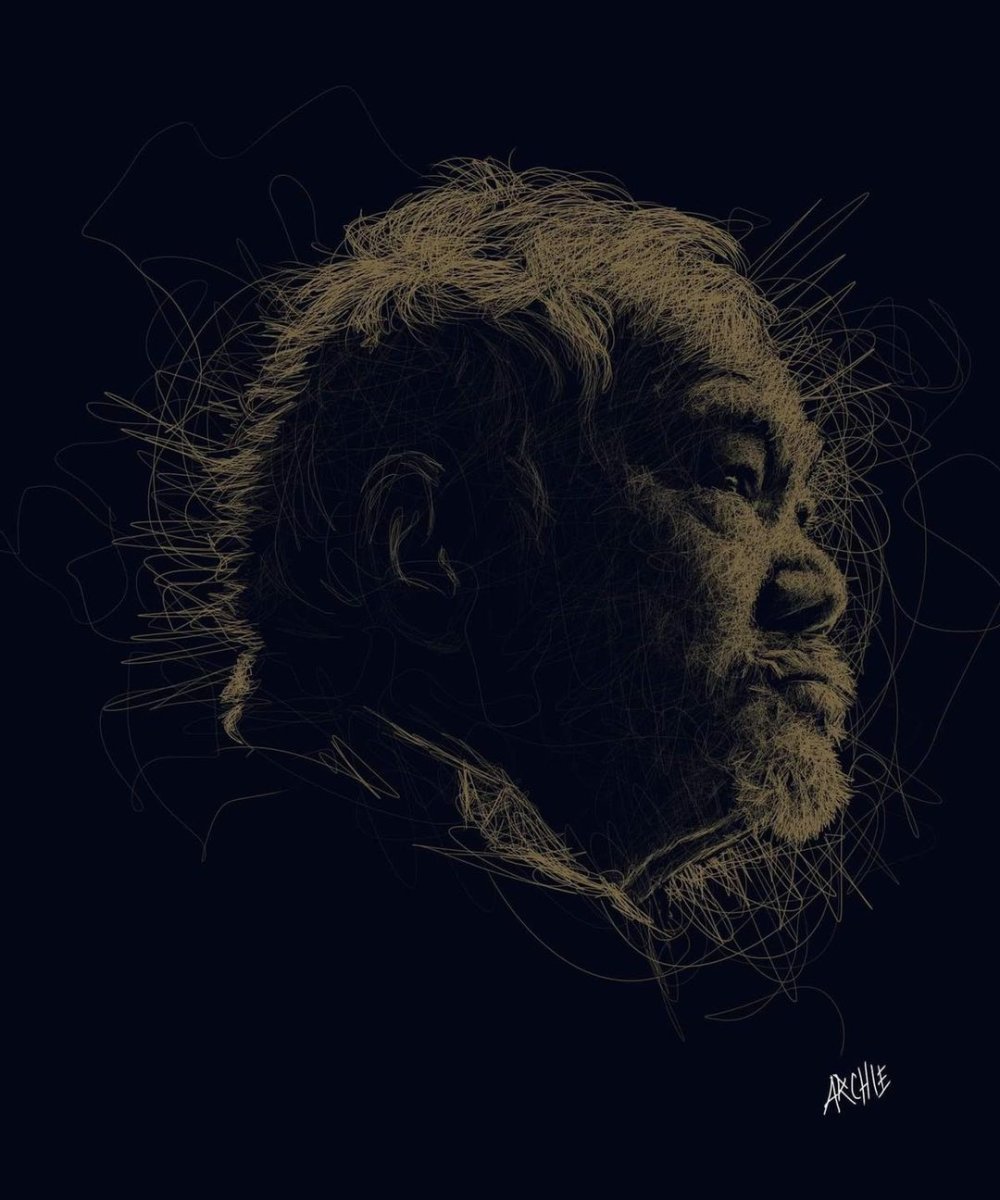 portrait of an artist, by an artist like efren, looks like archie used a simple implement that anyone can wield, to create something special-
