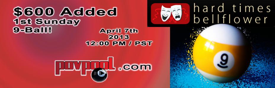 Join POV Pool for day 2 at Hard Times Billiards for the 1st Sunday, April 9 Ball Tournament!
