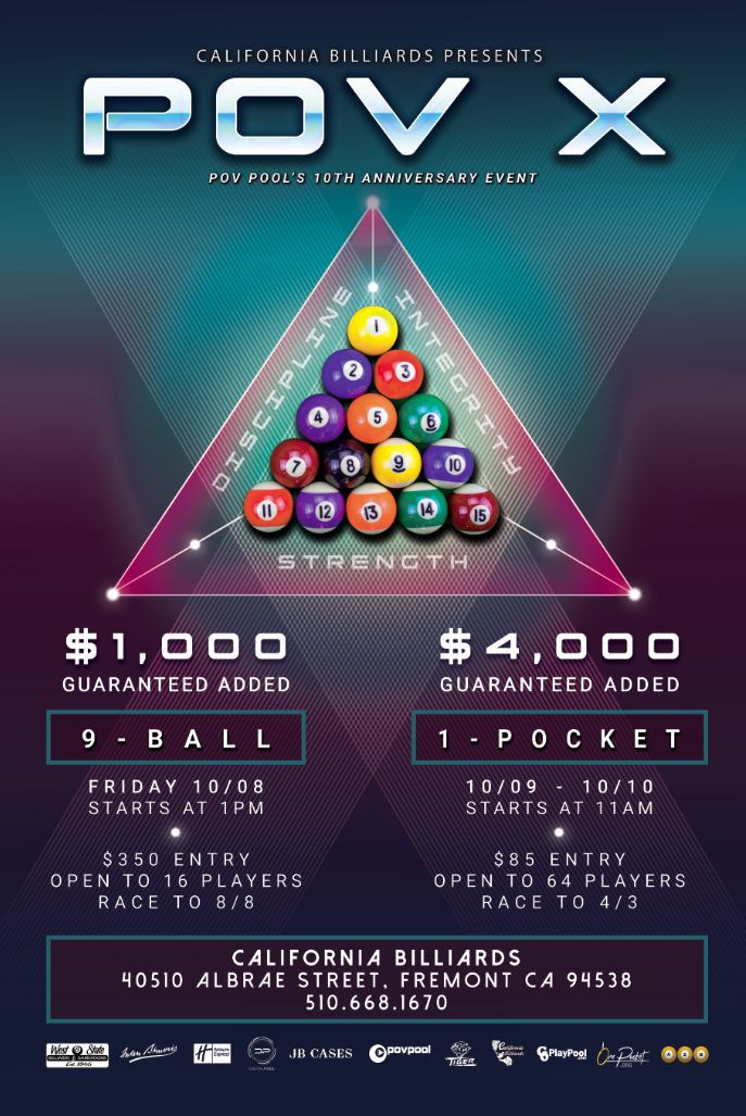 Join POV Pool and friends, to celebrate our 10-year anniversary event at California Billiards in Fremont with two action-packed tournaments: