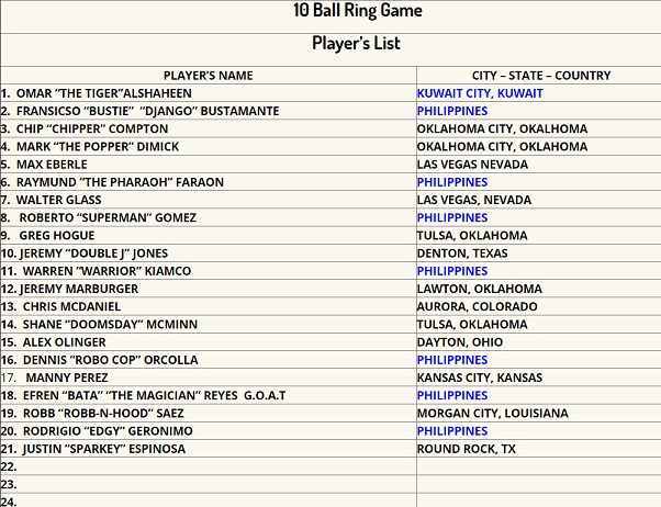 Lot of top players will be playing in these events. Including EFREN "THE MAGICIAN" REYES