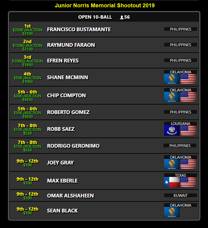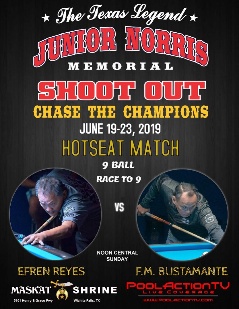 Congrats to Efren Reyes Junior Norris Memorial Shootout 2019 Champion.