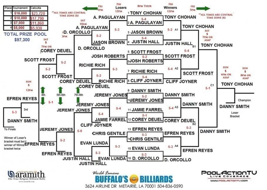 Down to the final 3 players Efren Reyes vs Danny Smith @ noon central