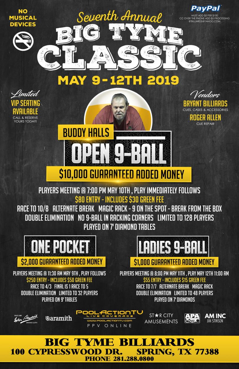 PPV - May 9-12th Big Tyme Classic, One Pocket, 9 Ball $13,000 Added