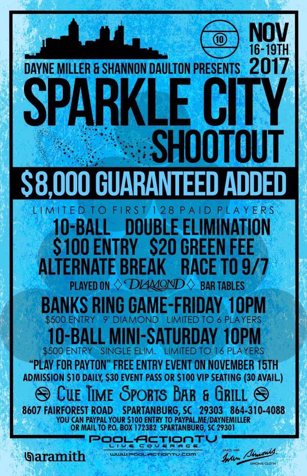 November 15th will be a fundraiser for Dayne Miller's little cousin Payton, who is battling Leukemia. 8 Pros will pair up with fans who will be bidding on the player they will play with! Scotch Doubles, coaching allowed 9 ball race to 5, single elimination. We will have SPECIAL buttons for you to make a donation and join in on the fun!