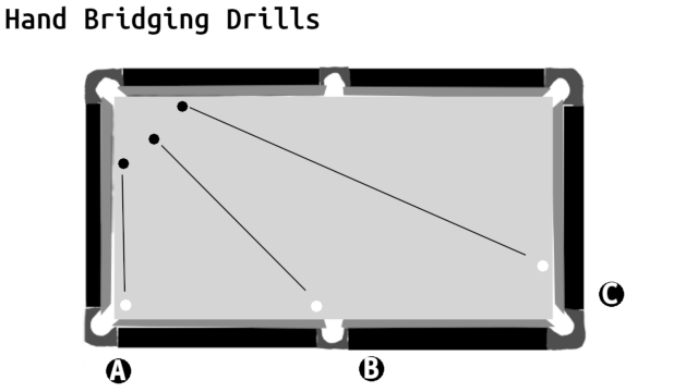 1st is one handed one rail kick to either of the 3 point balls. Make sure the pad is turned towards the cue balls' incoming direction.