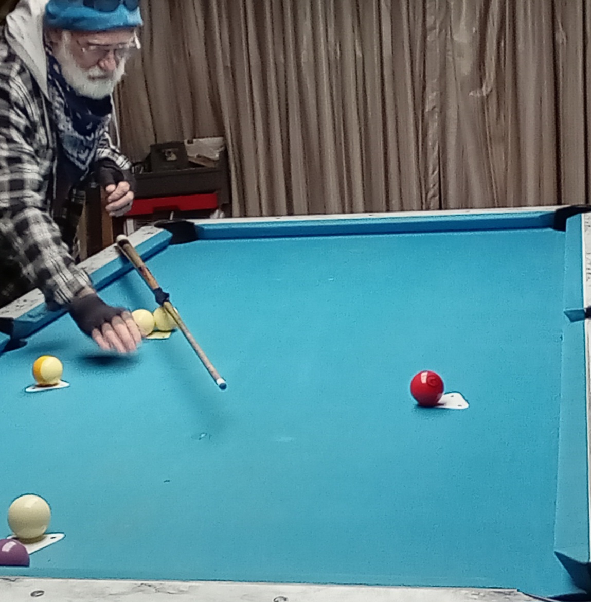 Right maps the line but comes up short. Lefty says, "thank you very much. In going for the 3 rail you showed me the 4 railer, which is a natural". Yikes hit the 7 from heaven