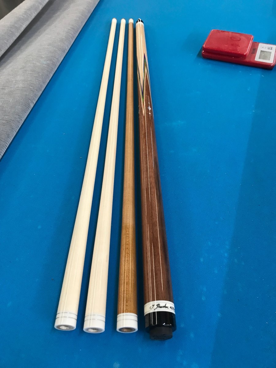 Just wanted to post an update on my Jeff Prather custom FS cue he has built for me. It’s a 4pt Bolivian rosewood into straight grain maple with Titlist veneers and some MOP inlays in the points with a custom Hoppe ring. I asked for 3 shafts: 2 maple and 1 kielwood. Throughout this process Jeff has been so gracious as to keep me up to date with texts and pictures. She is done and will be getting her soon. This is my first Prather custom and I have to say I am very pleased with the professionalism of Prather cues and Jeff’s communication. Enjoy the pictures. I think it came out very nice. I have no doubt it will be a great player. If you’re in the market for a great cue check them out. Sincerely,
