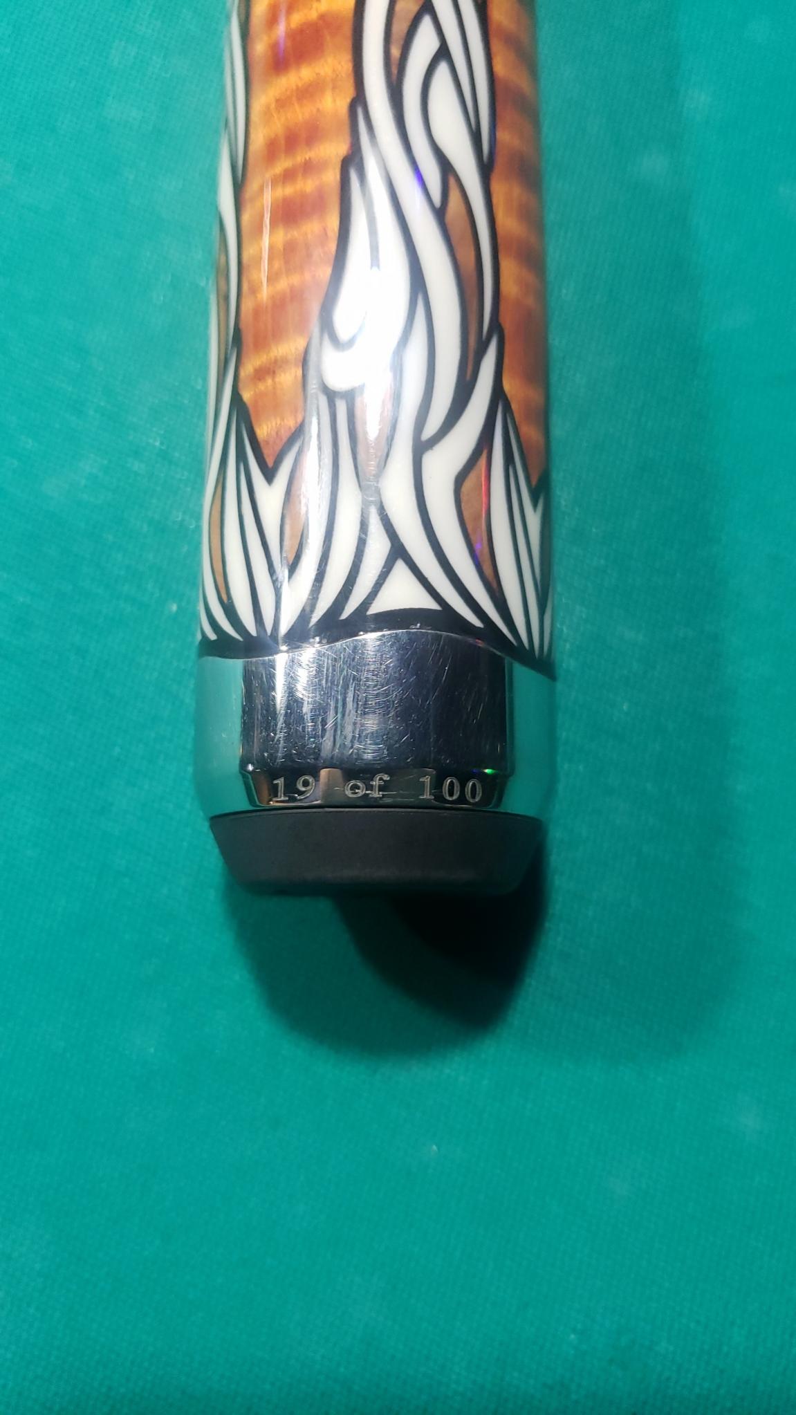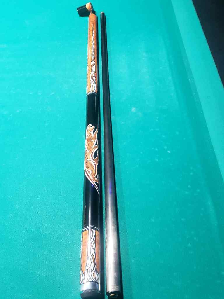 19oz 12.4mm shaft... it has few minor scratches on the butt which you can’t feel at all. this is no where by the inlays just on the black part of the butt. I had it cleaned up. this was never my playing cue. I hit about 10 balls with it to just try it. the cap has a piece broken off but it doesn’t affect the way it covers the butt. This is the way I received the cue. I won this cue in a raffle. this is why I’m selling this at a low cost. any other questions feel free to message me. looks like it was rubbed hard on something thats why it’s scratched.
