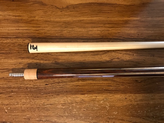 Top of the line Predator SP, Roadline LE 4 cocobolo and curly maple, true splice, leather wrap, 314-3 shaft, 19 oz., approx. 6 hrs. on original tip, condition is excellent plus, JP's, Retail:$729, firm @ $500 plus shipping. MO only. I'm Rick from Lafayette, LA.