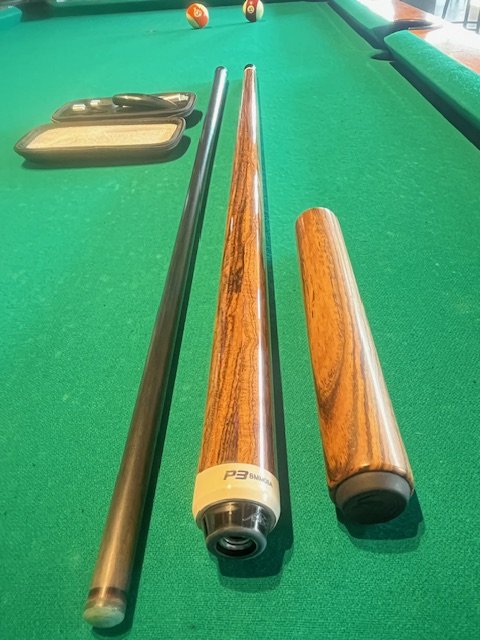 Predator P3 Bacote Wrapless it has a a uni-lock pin the 8” Bacote extension comes with. Also the predator weight bolt kit . A 2nd revo is also in the package. Only 1 shaft is pictured but both of them are in perfect condition. The cue is 9.5/10 condition .