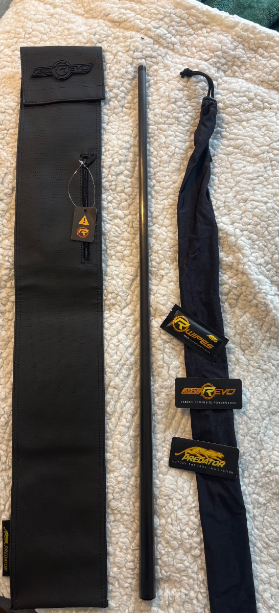 Comes with Predator leather soft “case” and shaft sleeve, along with stickers and one revo wipe.