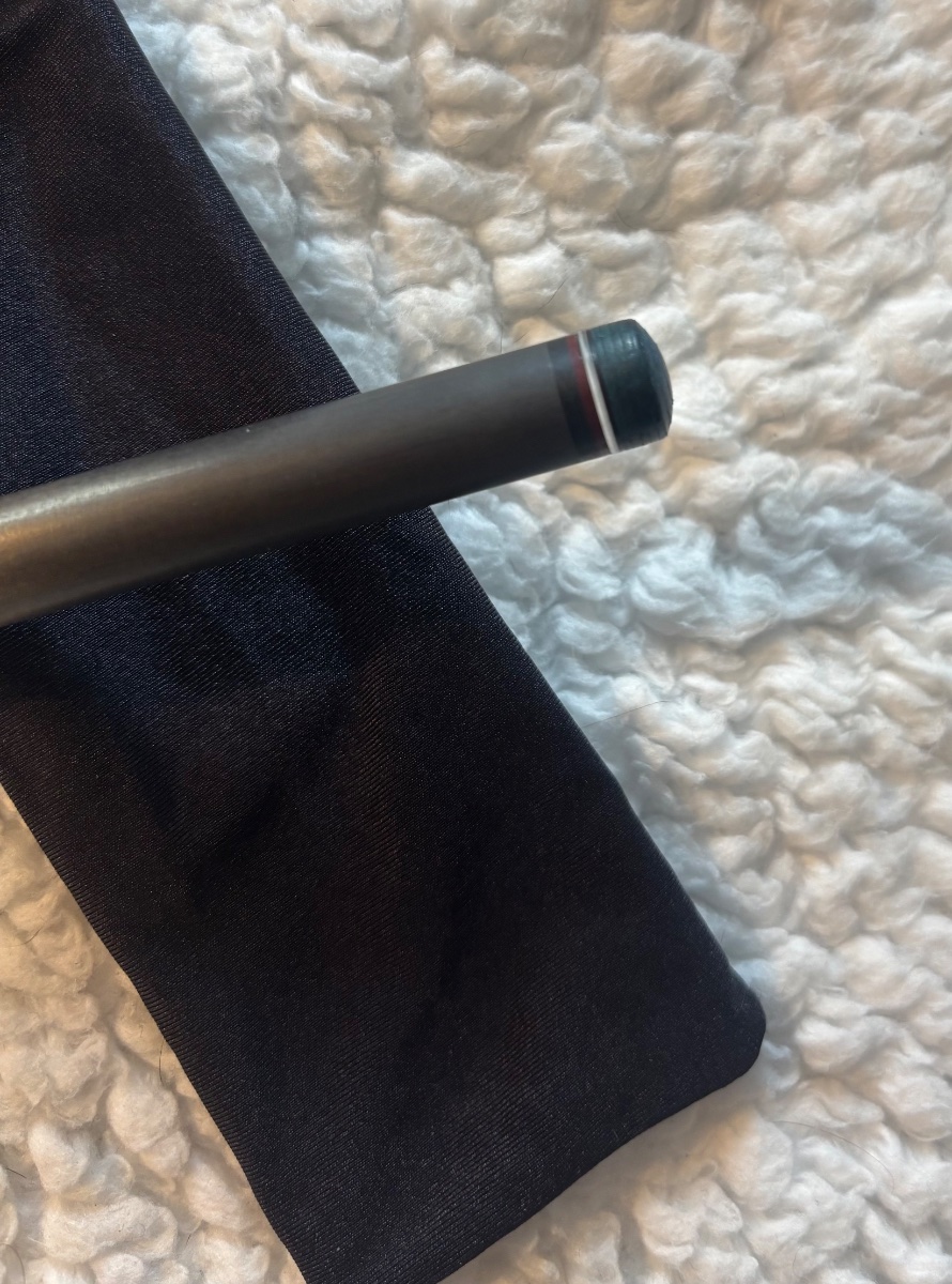 Shaft is in good condition, no visible scratches, no dents. Tip is almost new, installed and test hit. As with any carbon, rolls straight.