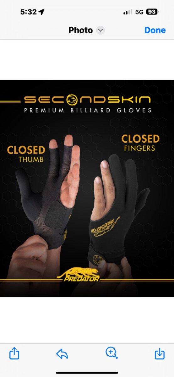 A glove lasts me about year. I’m very careful taking it off and on which seems to be the key. The predator is REALLY thin and seem to tear easier for me. I’ve been using kamui for a whileI just picked up a predator glove to try. I bought a dozen pack of cheap CueSoul gloves a few years ago that i finally wore thru. I like those, but there's no grip when close to the edge of the table.