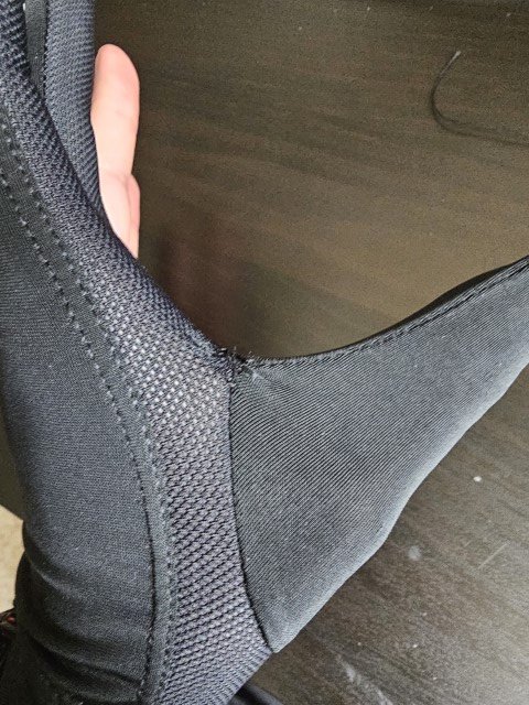 Contacted Predator anyway and will see what they say. Fixed and reinforced the seam myself since it's easy (thanks to years of fixing hockey pads, bags, etc). Also found a better way to take it off: grab it below that seam and pull from between the thumb and hand.