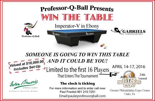 A little bump. BTW the table is raffled. It doesn't go to the winner of the tournament. You do have enter the tournament for raffle tickets. That's it. Give Paul a Call He's taking names