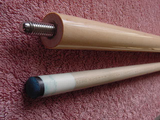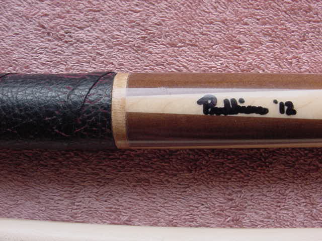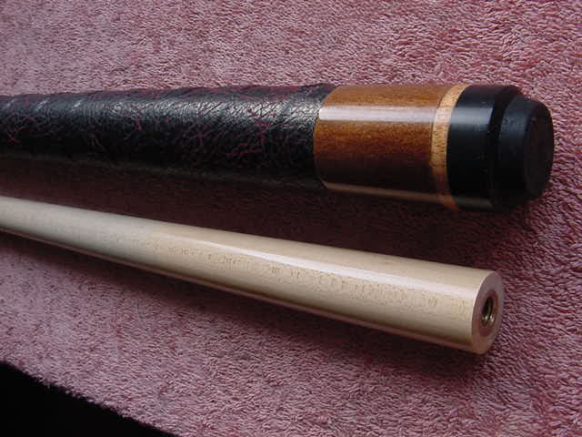 Prulhire Custom Cue: Butt 13.1 oz. with no weight bolt. Weight can be added. Shaft 4.5 oz. 13.25 mm. Leather Wrap. All smooth cue, No dents, No dings. Nice cue and rolls straight. $139. Shipped