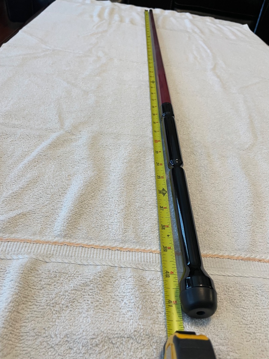 For sale I have a nice brand new jump cue for sale. The handle is McDermott brand all black. The shaft is Purple Heart with phenolic ferrule/tip combo. It’s 3/8x10 pin. In the pictures you can see the length (41.5 inches) and weight (8.69oz) of the cue.