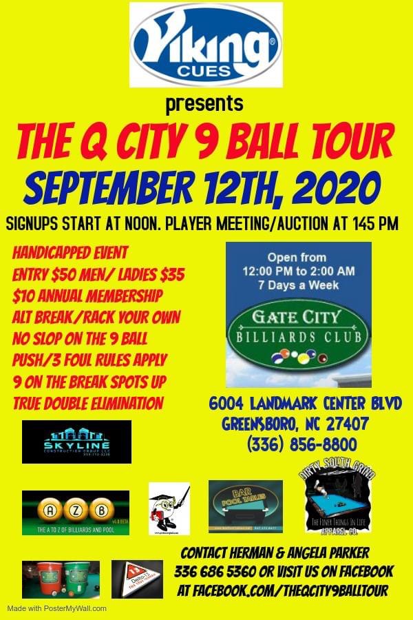 Q-City Tour Coming to Gate City Billiards Club in Greensboro, NC September 12th See flyer below for details: