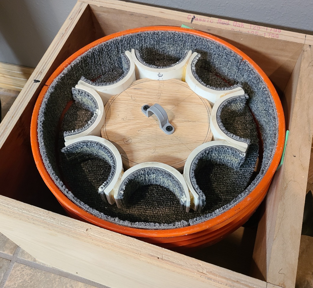 No junction box, 7" car polisher as that is what I had laying around. 10 1/2" board with carpet attached velcroed to the polisher plater. No on off switch, just the switch on the buffer that locks on. No luck on the ground wire in cord, just 2 wires. I have tried Meguiars cleaner wax, and Plastx. Willing to try Aramith polish, but after looking at the ingredients, it just appears to be another form of polishing wax. I had the Meguiars at home so that is what I tried. I may try attaching a ground wire to the outer bucket rim to see if that does anything. I gotta say that if I have to buy motors, pulleys and diamond parts to make this work, I'm going to just buy a commercial unit. I did this as most of the stuff I had laying around, and only spent about $10 for additional parts. Appreciate all the suggestions. Maybe it's just the carpet that I used, it's a closed tight loop.