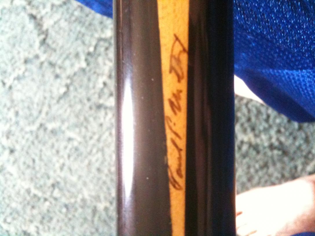 Paul is from my local area and i just talked to him on the phone. He told me this is the only one of his jump breaks that he has put a chess piece inlayed on the bottom. Pauls normal jumpbreaks would have white rings on the bottom or have the duffrin plug. This cue was orginally made for a WV man, but through the grapevine has been passed through many hands until mine. Paul also stated that he has not made a break jump cue in 15-20 years.