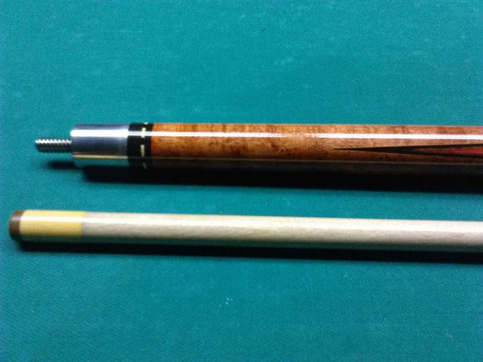 Have to part with my best shooter cue & Shaft, here are some photos, better then the ones on eBay! This is an 80s' Schon by Runde with sharp full splice awesome veneers and a brand new stacked leather "impression" wrap, the Shaft is also from the 80"s its also a Schon Runde Rare 30" shaft! This is the old Micarta that is famous for its hit! Shaft is all original with Dennis Searing's Precision Medium Tip and has never been sanded.