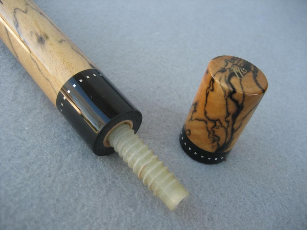 Great choice of materials. This one looks like a super high figure spault. Definitely unique. It seems to me to be a signature cue of Mr. Chudy... the single side veneer into forearm wood of surpassing beauty and a truly masterful finish. It is a one-of-a-kind that most collectors will recognize from across the room.