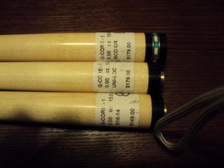 I am reducing the price of this McDermott G Core shaft to $70 shipped in the US. It is the shaft in at the bottom of the three and is the only one that I have left. Shaft is perfect and never been chalked. PM me if interested!