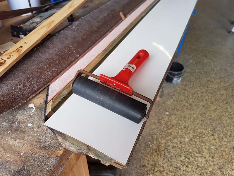 It's pretty easy when you get used to it. The 2nd pic is rolling the Formica all over to get good adhesion. You can use a rag and your hands if you don't have a roller.