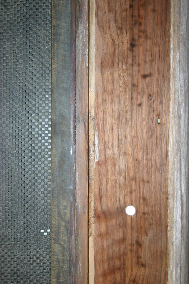Finally an image of a stripped, but not sanded, apron. Still don't know what that white stuff is, but it won't come off with the stripper.