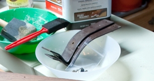 In the first photo, you'll see the stark contrast in colors that poplar wood produces. There are two coats of Dark Walnut Danish oil on it. Tonight I'll wet-rub with 400 grit another coat of oil slurry, and wipe it down.