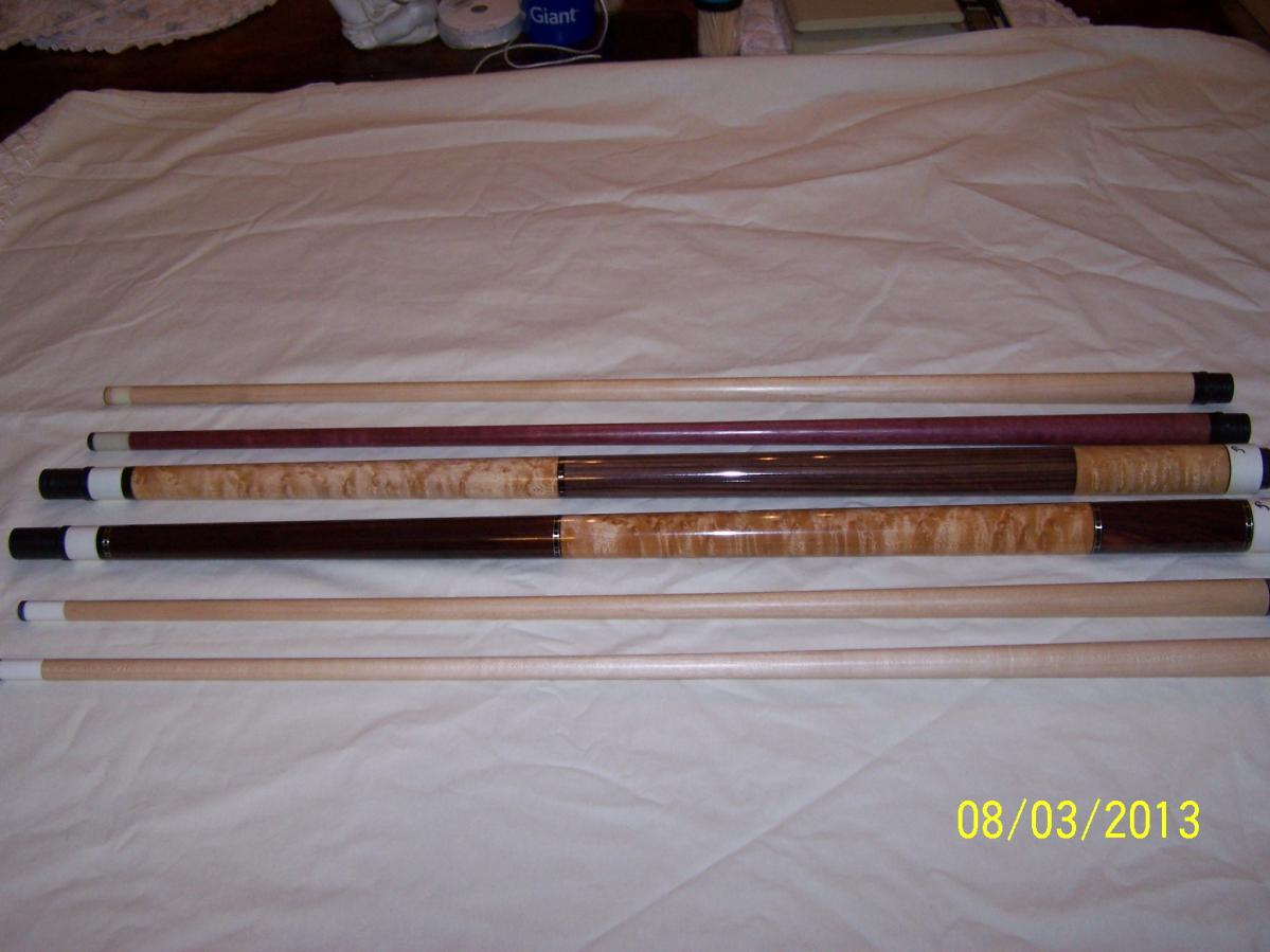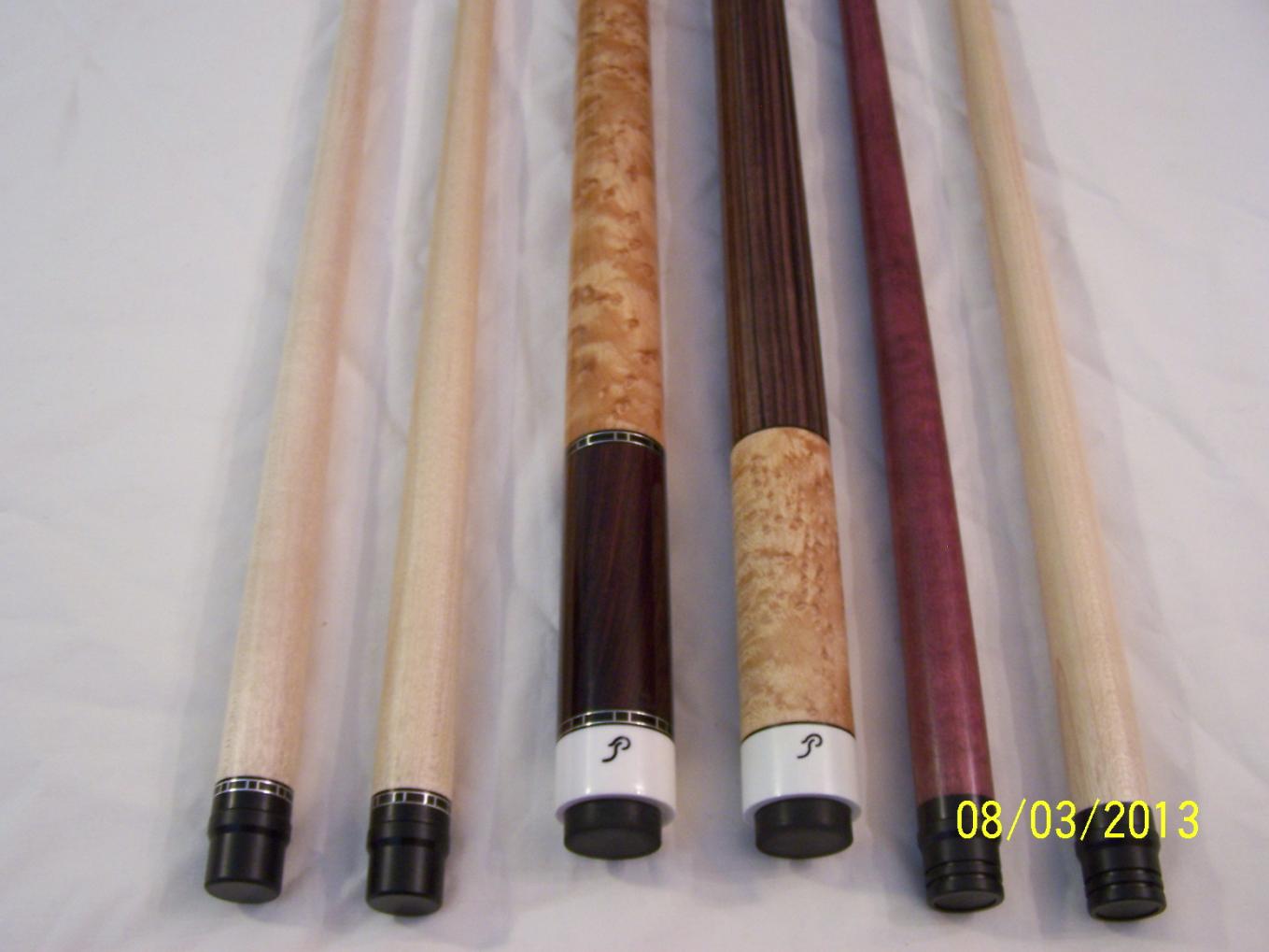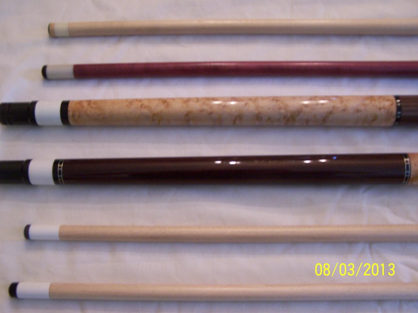 Here's a set of reversed woods, Kingwood and BEM. Breaker on the top, shooter on the bottom. My picture taking still leaves alot to be desired. Thanks for looking, Alan Phelps Custom Cues