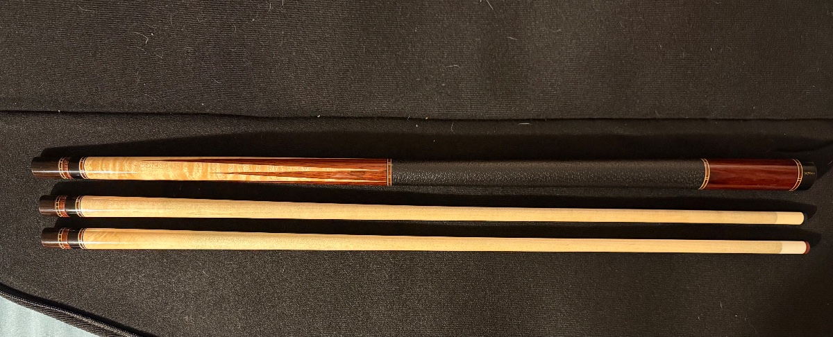 Cue is amazing and plays as good as it looks. Feel free to ask any questions and I have plenty of references if needed and can send my cell if you would like to talk or want additional videos. A buddy has a wrapless sugartree I want, would trade for a wrapless sugartree, bender etc hard hitting stiff cues