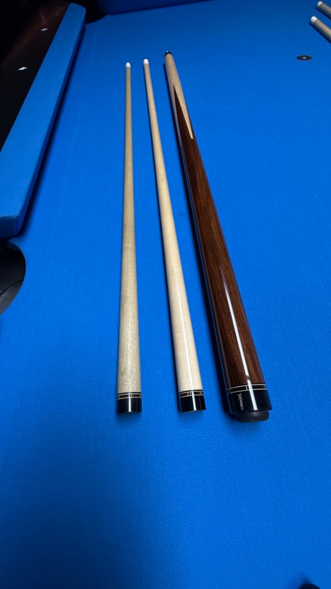 The darker shaft I picked up after I bought the cue for a spare but it is thinner , great hitting cues 😎