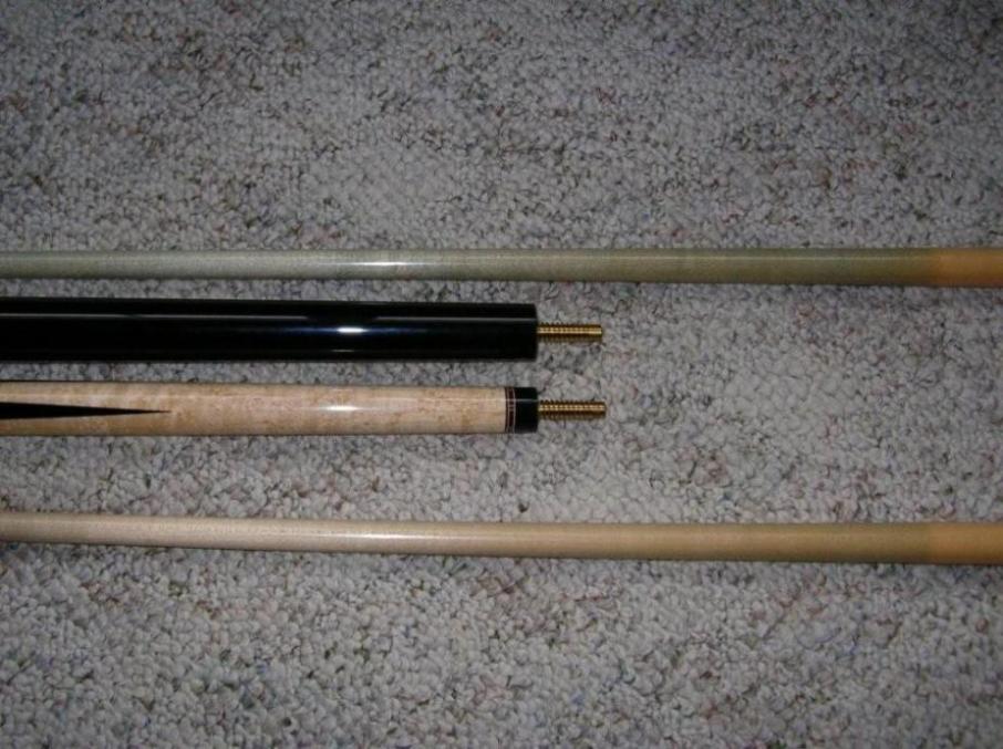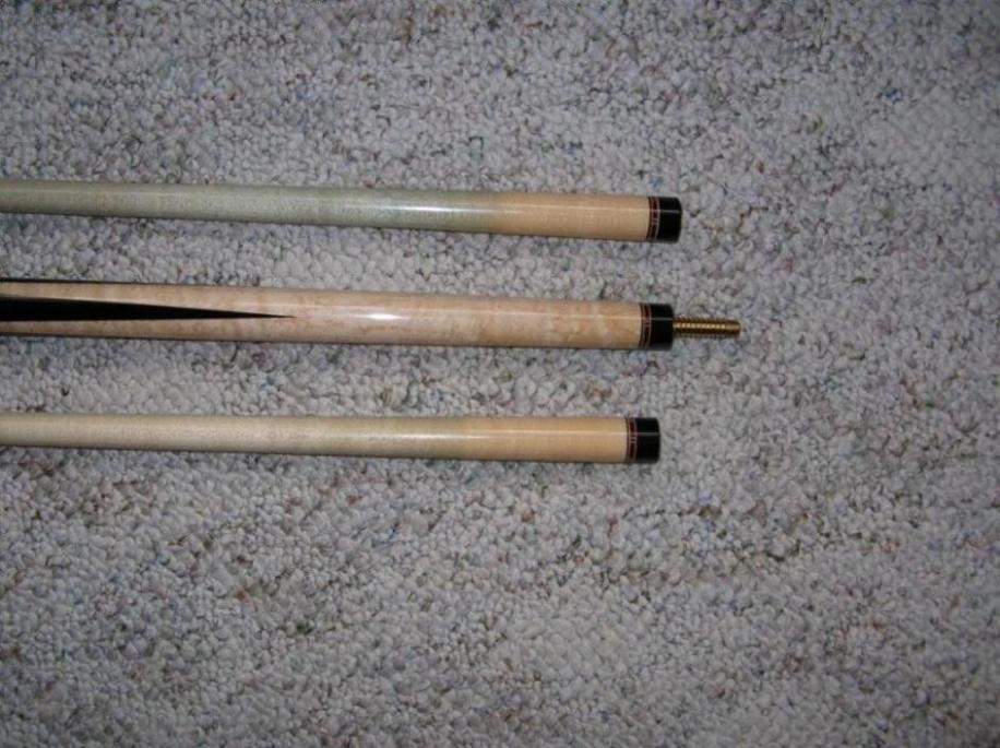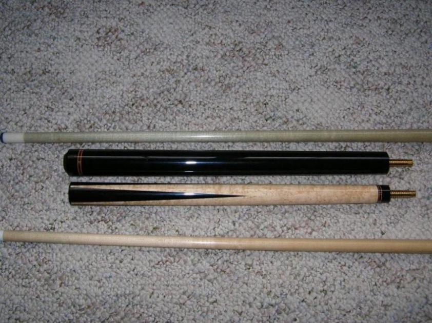 Custom Rick Howard jump break forsale. Cue weighs 20.5 and has 2 shafts.