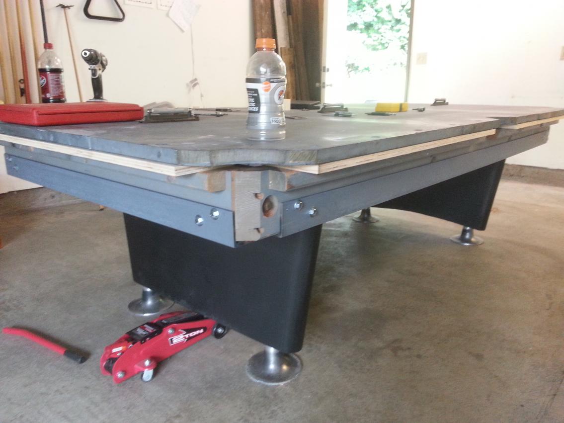 He made my feet adjustable, added his leveling system, and fastened the 3 piece slate together.