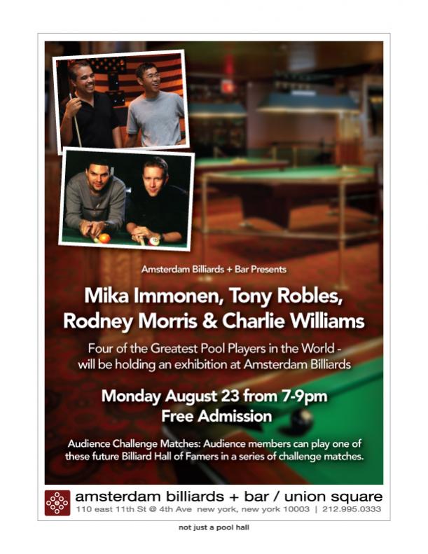 ABC_Leagues NYC Aug 9, 2010 #1 A great chance for New York-area pool fans to see some of the best in the game today! Attachments Exhibition-80910.jpg 68.6 KB · Views: 153 Last edited: Aug 9, 2010
