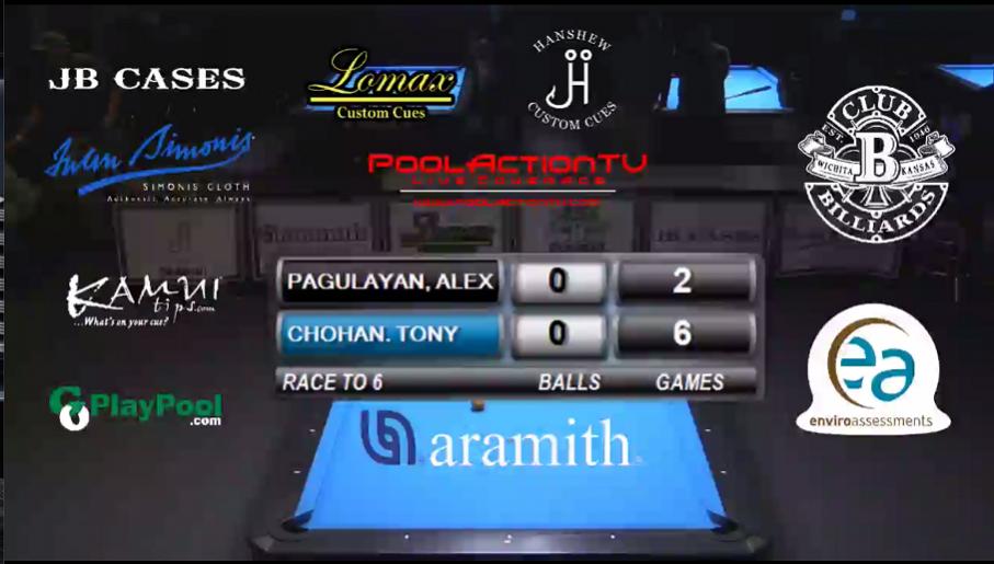 Great win for Tony Chohan and an Excellent 2nd place finish for Alex Pagulayan. Francisco Bustamante earned a tough 3rd and a notable 4th place finish for young gun Sky Woodward.