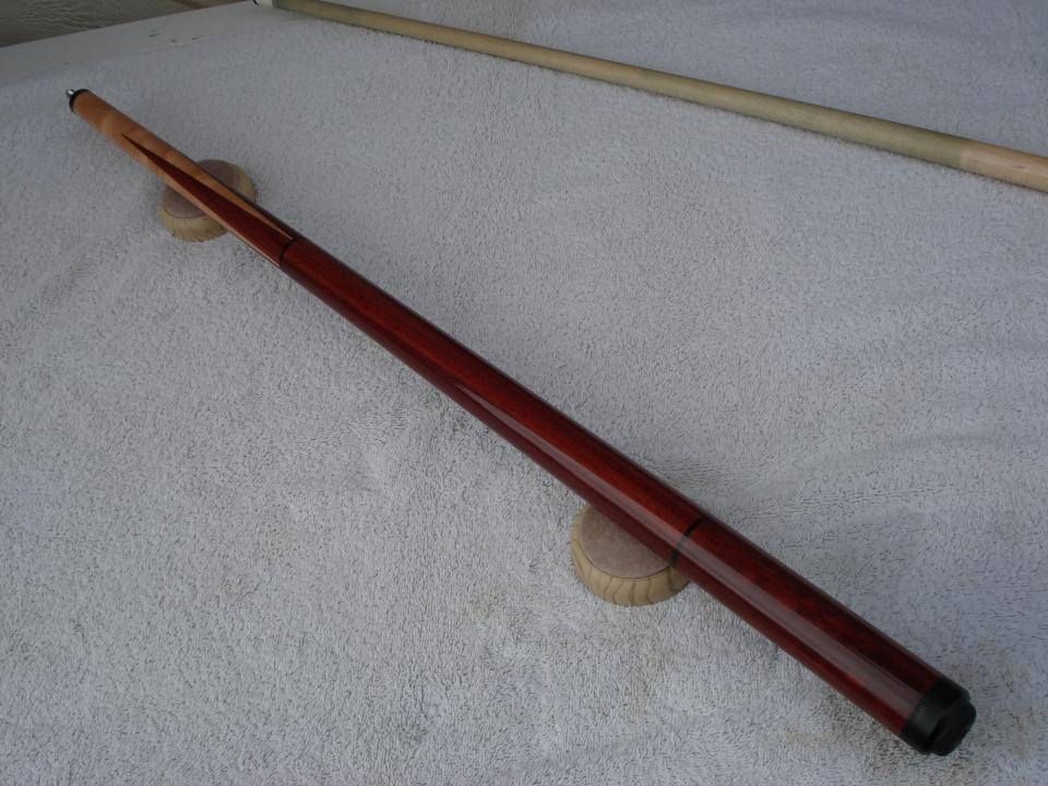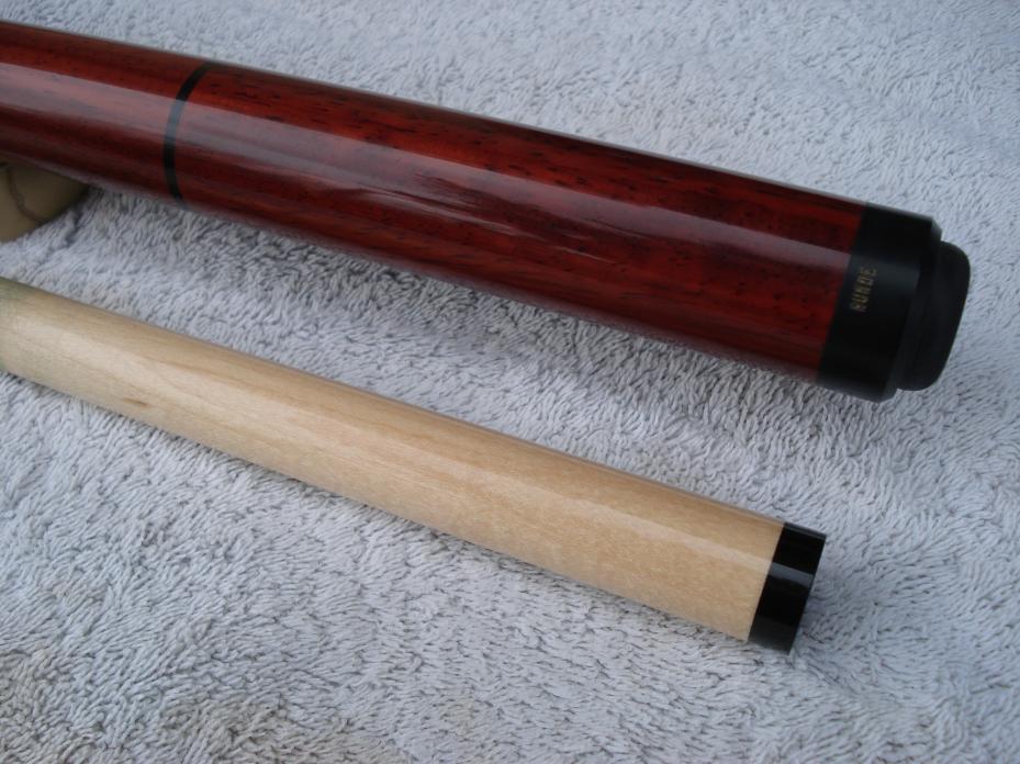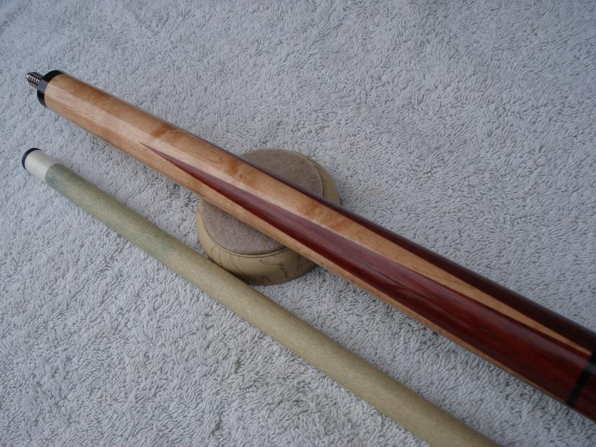 Cue has beautiful wood, African Padauck and Maple.There is a small movement in the shaft when rolled by itself. When put together the cue rolls straight. Cue rolls well on the rail as well.