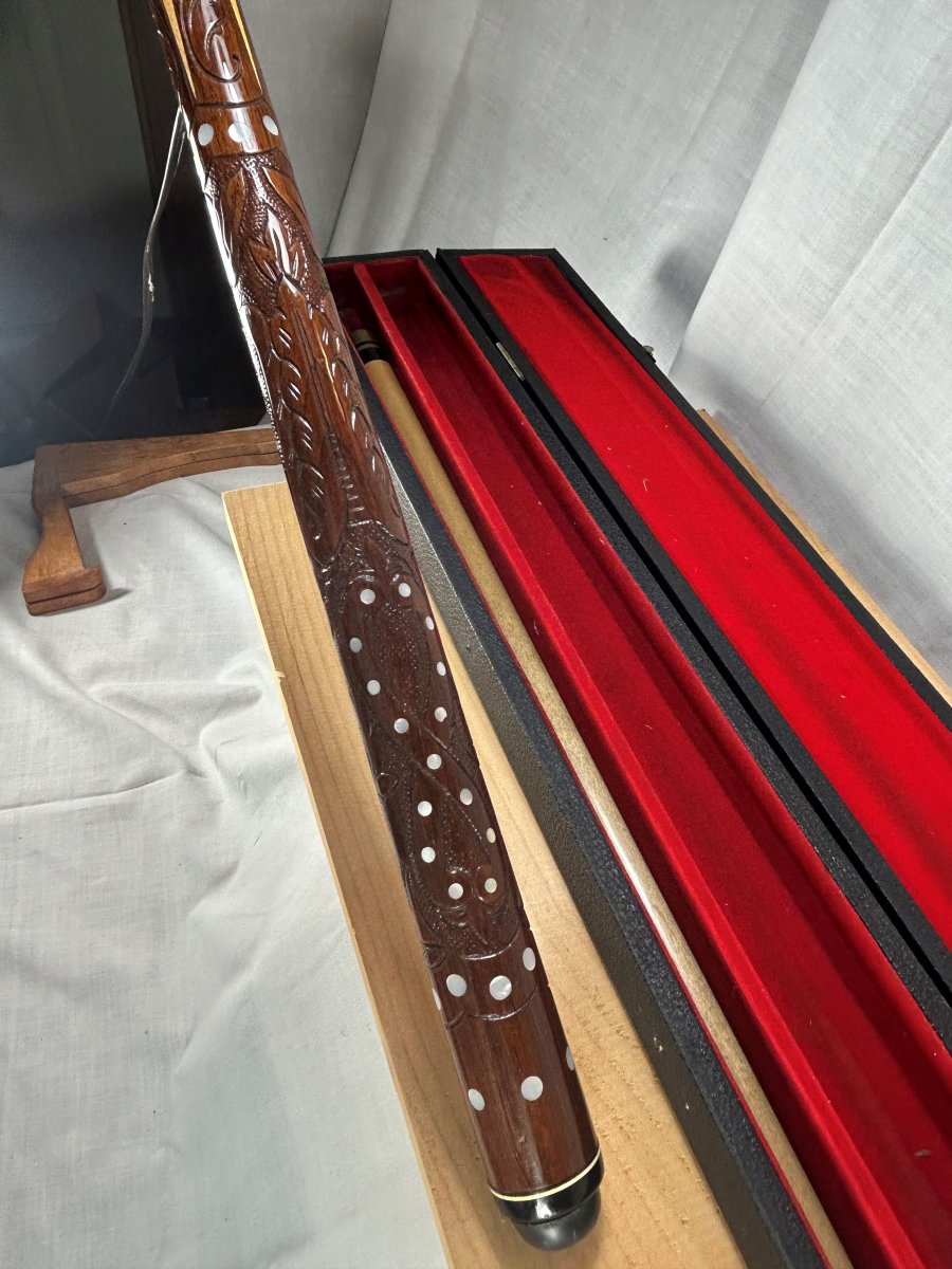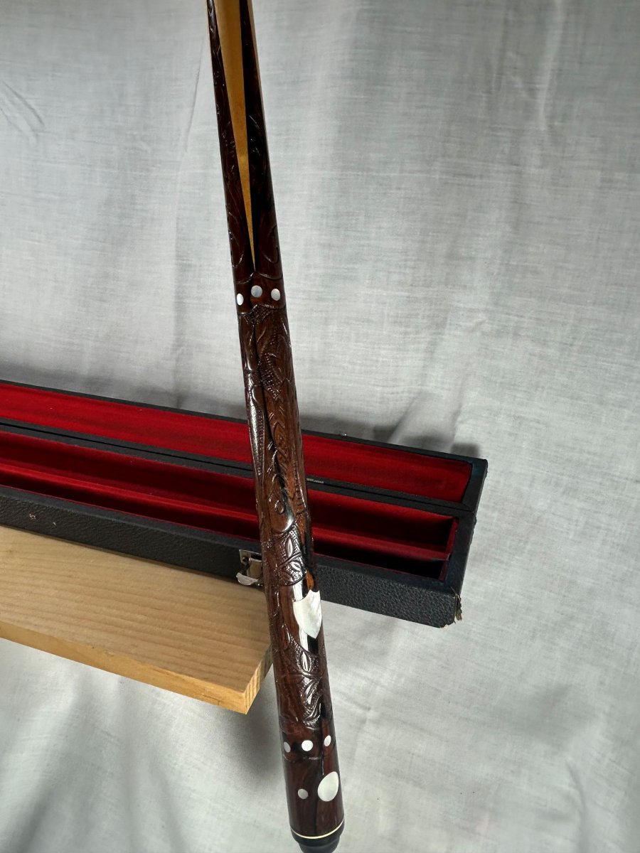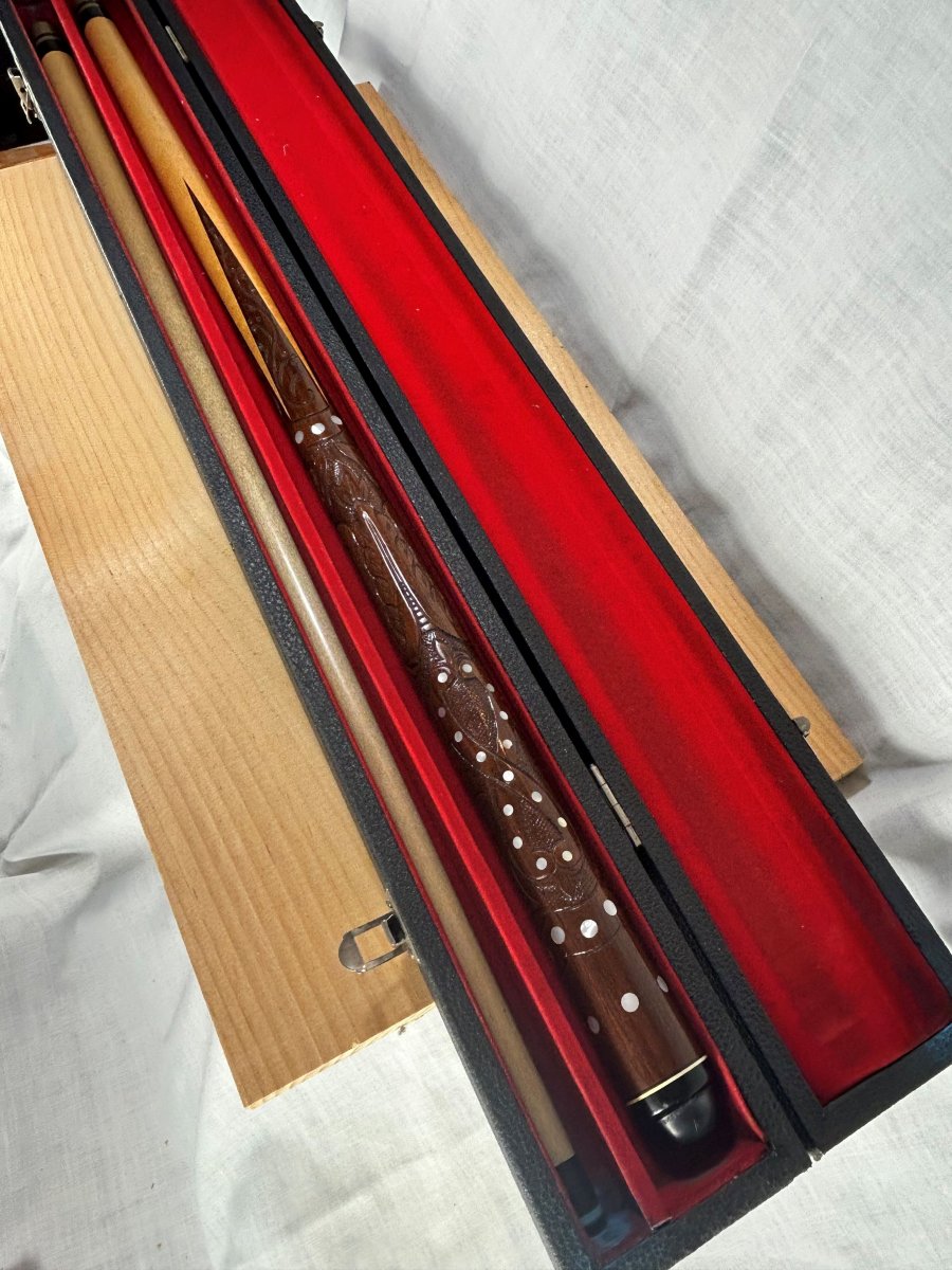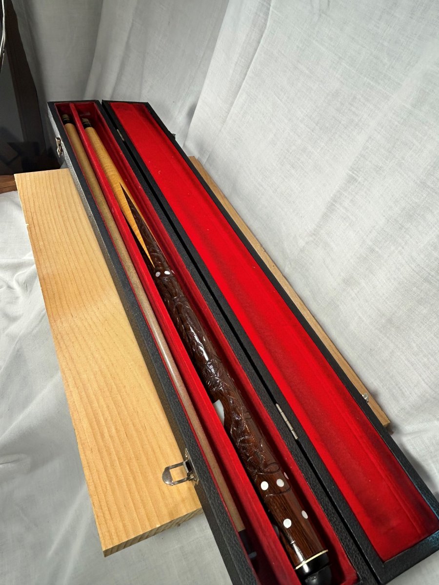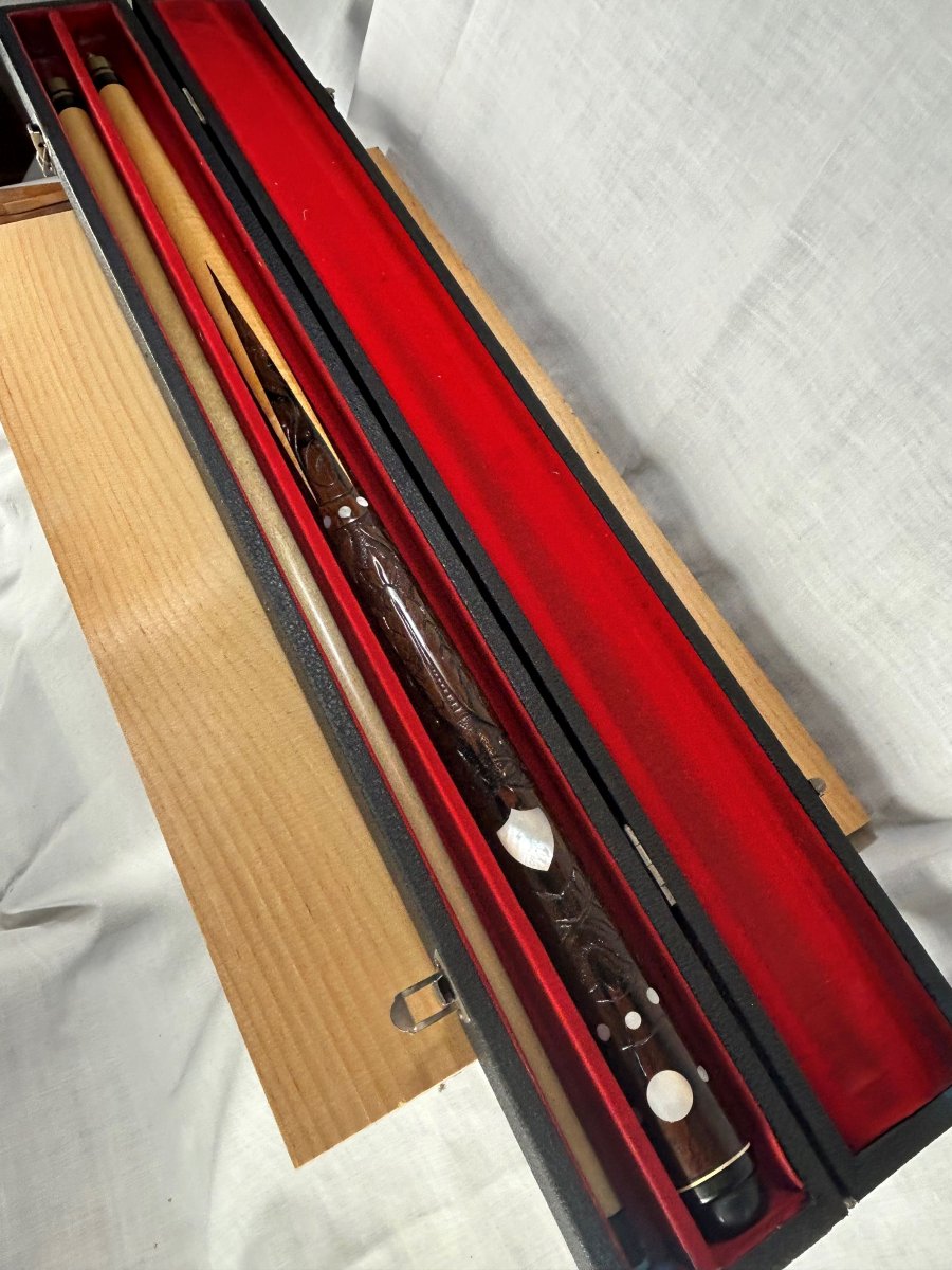 Hello all! I need the help of the group. My father had 2 Sampaio cues in hard cases. Here are the pictures of the second one. Any information and values would be appreciated. If there are item numbers or serial numbers, please tell me where I can find them. I can attach other pictures, whatever helps. Thanks!!