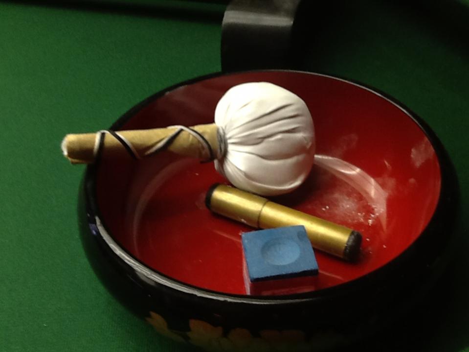 The uchiko powder bag used in the maintenance of Japanese swords makes a classy, finer-than-talc powder dispenser for all your Philistine buddies that insist on making themselves baby-fresh before they shoot.