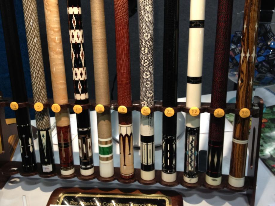 Took these pics from my phone, so I apologize for the quality. These are the cues the ACA cuemakers submitted for the ACA Cue of the Year.