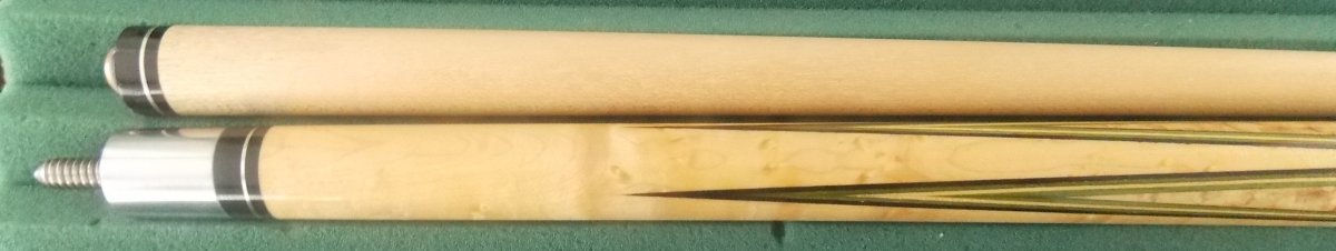 optional silver ring joint. birdseye on birdseye, w/ green, natural, green, black veneers. fancy ringwork above wrap, two in butt. vg condition. butt 14.9oz, 30"