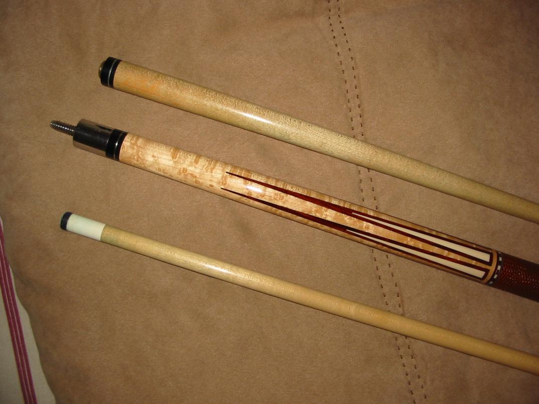 Just added a near new SchonIV ivory ferrule shaft. Cue was about $1400 new and is in very good condition. Looks good and plays better. Will consider trades but prefer cash. Specs are just under 19 oz with both shafts. Ivory shaft is about 12.75 mm. Original shaft is 12.4. It developed a little roll so I picked up the ivory shaft. I may have an old growth shaft made by Paul Dayton for my older Schon available for this cue if the potential buyer does not want it. Bob cdabobh@earthlink.net NEW PRICE: $800 Shipped