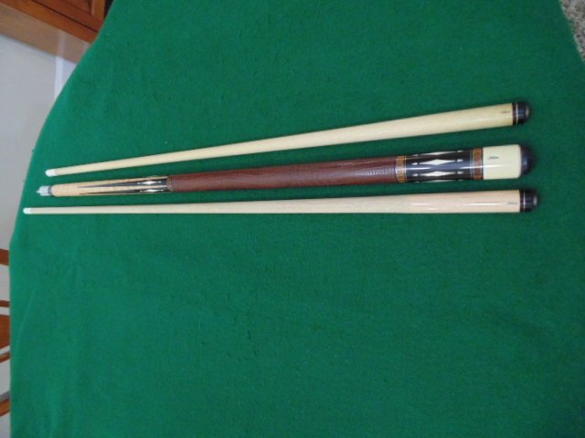 the leather wrap. I am selling this cue for REDUCED $1150 shipped in the USA. The 32 in shaft has a 11.75 mm and the 29iin is 12.8 mm.
