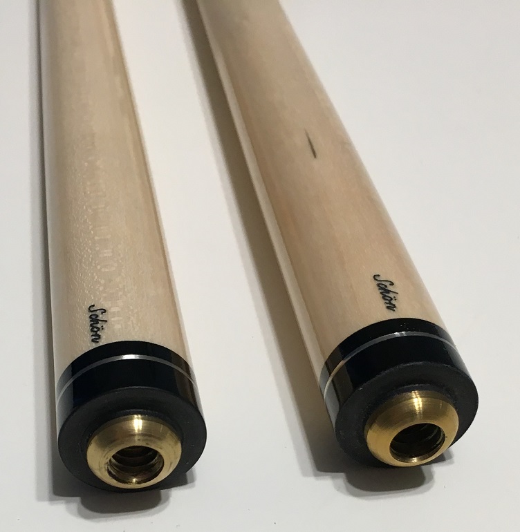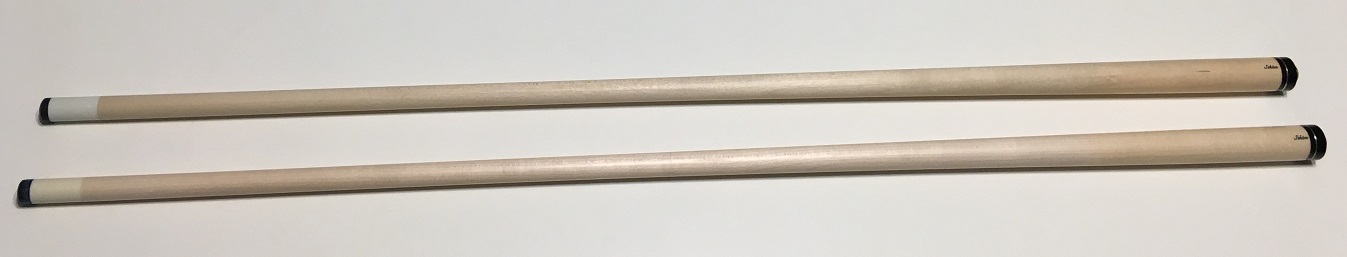 The butt is in excellent condition, with no nicks or scratches and all pieces roll straight together and apart. One of the shafts has been lightly played and the other shaft has been chalked, but never played.