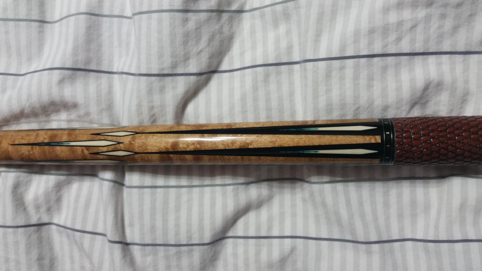 Beatiful schone cx52, lots of turquoise and ivory. Custom wrap, the cue does have one ding in it but you can't notice unless you look for it in the light. Comes with a nice instroke 2x4 case and a jump break cue. Asking $1000 shipped.