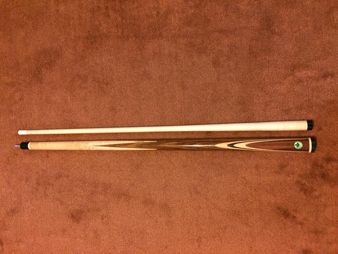 This is a bumperless cue. Comes with one shaft.