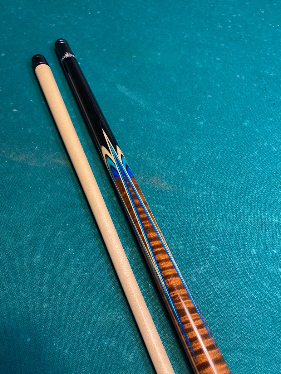 It was built from a Brent Summers blank. This cue has very light play, no dings or scratches. 19.2oz 12.8 mm shaft with a 3/8 10 modified pin. $2900 shipped. No trade offers please. Rod. 425-287-3884