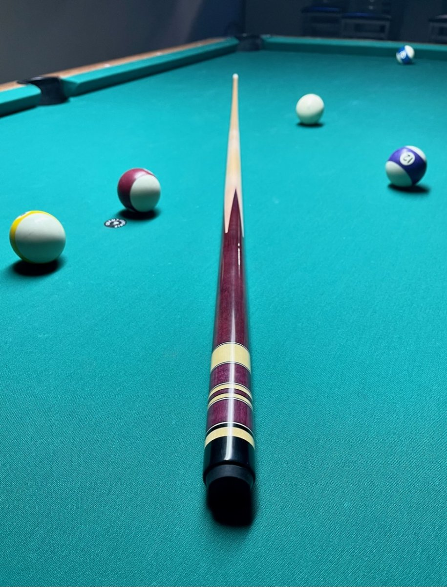 The pictures suck but the cue is really nice looking.Looking for some ideas on a new cue. Would love to see your Purple Heart sneaky Petes.