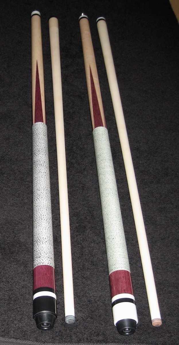Very cool. I like that. Good job you did.I modified this Purpleheart Meucci, so it isn't quite as sneaky anymore. The older ones like this one are full splice cues. The one previous/above is not full splice it is a separate handle and forearm.